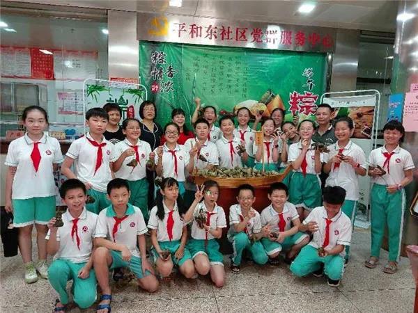 活動現(xiàn)場,參加包粽子的平和東小學(xué)師生和社區(qū)群眾代表自主分工,洗粽葉、淘米、準備餡料,大家忙得不亦樂乎,現(xiàn)場笑聲不斷,到處洋溢著溫暖的味道。在民間“裹粽高手”的指導(dǎo)下,卷粽葉、裝糯米、裹粽葉、纏粽線……動作一氣呵成,在一雙雙巧手下轉(zhuǎn)眼變成了一個個誘人的粽子。