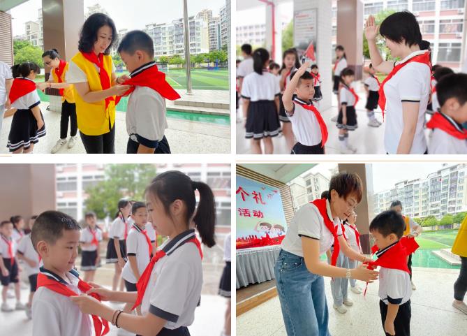 學(xué)校有關(guān)行政、一年級(jí)中隊(duì)輔導(dǎo)員、家長(zhǎng)志愿者代表及隊(duì)員代表為新隊(duì)員們系上鮮艷的紅領(lǐng)巾,新隊(duì)員們目光堅(jiān)定,在莊嚴(yán)的隊(duì)旗下,高高的舉起右手大聲宣誓,整齊洪亮的聲音回蕩在校園上方,相信隊(duì)員們一定會(huì)在星星火炬的指引下,好好學(xué)習(xí),在中國(guó)共產(chǎn)黨的領(lǐng)導(dǎo)下,向著光明的未來(lái)前進(jìn)。