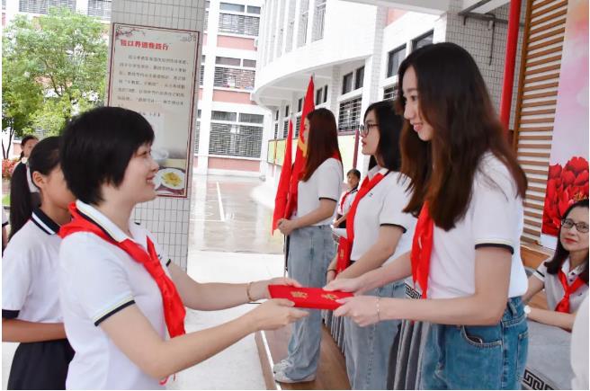 副校長(zhǎng)吳曉君則在對(duì)隊(duì)員寄語(yǔ)中對(duì)新隊(duì)員們提出了新要求,讓隊(duì)員們銘記:入隊(duì)是一次理想啟航,戴上紅領(lǐng)巾我們更要聽(tīng)黨話,跟黨走。希望他們?cè)陉?duì)旗的指導(dǎo)下,好好學(xué)習(xí),從小樹(shù)立遠(yuǎn)大理想信念。強(qiáng)健體魄、嚴(yán)格規(guī)范行為,用自己的實(shí)際行動(dòng)為隊(duì)旗爭(zhēng)得榮耀,為國(guó)旗增添光彩!