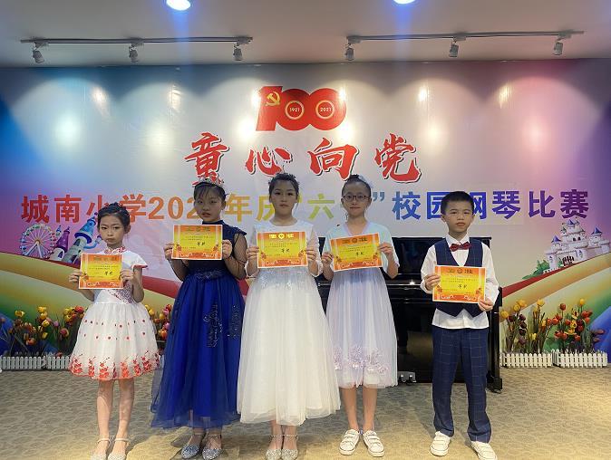 為慶祝中國共產(chǎn)黨成立100周年,弘揚愛國愛黨主旋律,傳承紅色基因,城南小學開展以“童心向黨”慶“六一”為主題的慶?;顒?。本次活動分二個專場進行——校園演唱比賽和校園鋼琴比賽。
