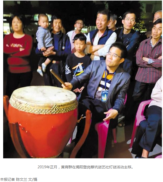 “那時候接觸了燈謎后,便非常癡迷燈謎文化,只要聽說哪里有猜燈謎活動,我都會去瞧一瞧?!秉S育群告訴記者,他經(jīng)常和“謎友”們一起研究謎語。1986年底,年僅18歲的黃育群加入普寧縣燈謎協(xié)會,成為該協(xié)會最年輕的一員。