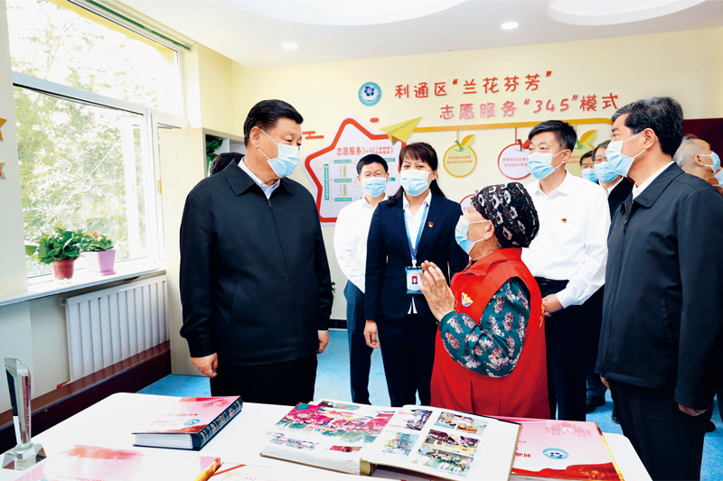 2020年6月8日至10日,中共中央總書記、國(guó)家主席、中央軍委主席習(xí)近平在寧夏考察。這是6月8日下午,習(xí)近平在吳忠市利通區(qū)金花園社區(qū)黨群活動(dòng)服務(wù)中心,同社區(qū)志愿者代表親切交談。 新華社記者 鞠鵬/攝