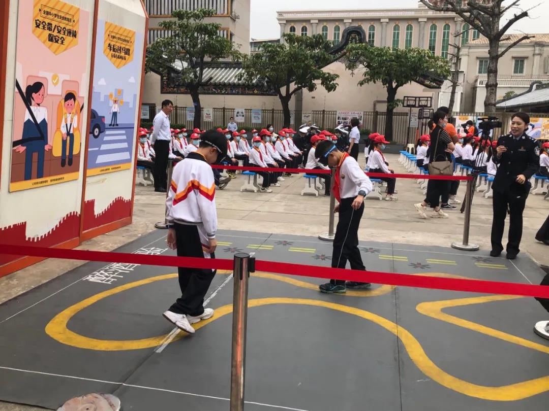 在民警的引導(dǎo)下,同學(xué)們還前往在操場設(shè)置的醉酒體驗區(qū)和汽車視覺盲區(qū)體驗區(qū),戴上模擬眼鏡、坐上汽車駕駛座,親身體驗酒后駕駛及忽視車輛視覺盲區(qū)的危險性,提高自身防范意識和能力。