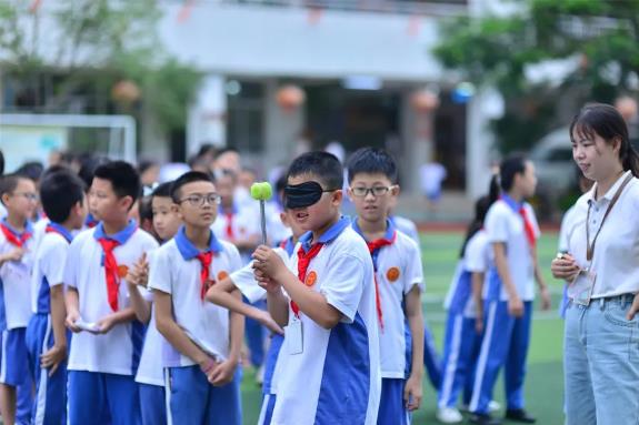 早上8:30,游園活動(dòng)拉開了序幕。孩子們排著整齊的隊(duì)伍,懷著激動(dòng)的心情來(lái)到操場(chǎng),孩子們玩“一箭穿心”、“吹乒乓球”時(shí)屏息凝神、全身貫注;玩“定點(diǎn)投籃”、“盲人擊鼓”時(shí)的驚險(xiǎn)刺激,都成了操場(chǎng)上一道亮麗的風(fēng)景線。