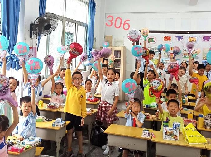 5月31日下午,隨著上學(xué)鈴聲響起,對“六一”期待已久的孩子們興高采烈地涌進(jìn)校園。在班主任的精心布置下,教室在一個中午就變了個模樣——走廊上鮮艷奪目的彩帶,門窗邊五顏六色的氣球,黑板上熱烈醒目的主題詞,講臺旁精美的禮品,無一不吸引著孩子們的眼球。