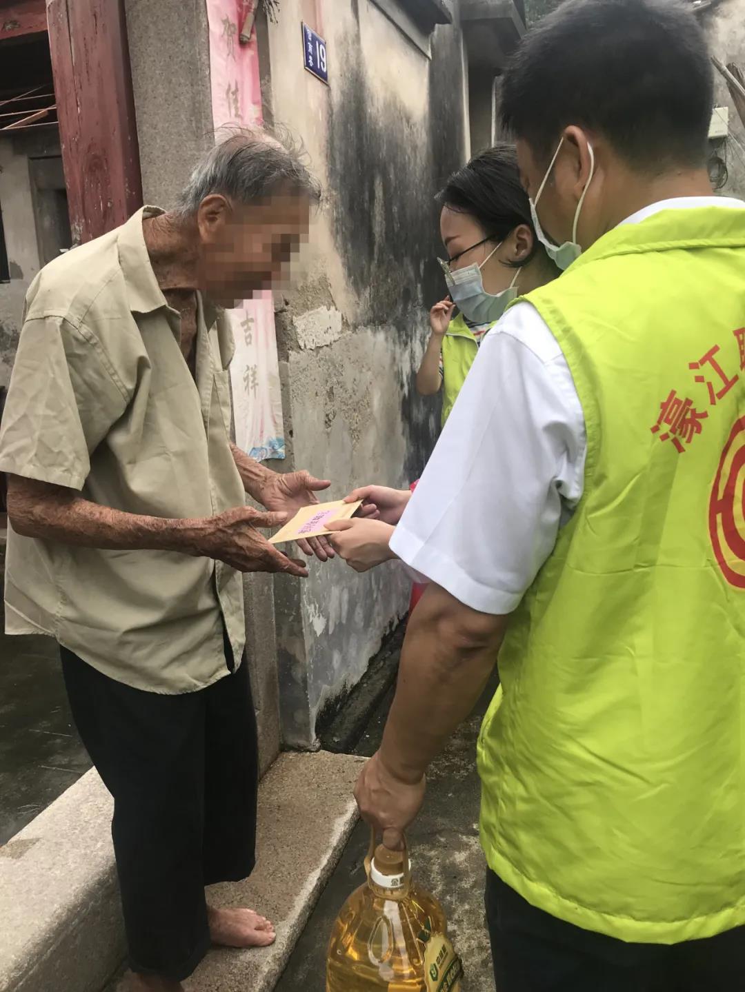 走訪過程中,志愿者們冒雨前行,在社區(qū)工作人員的帶領下上門入戶對社區(qū)內的孤寡老人進行了慰問。在老人們的家中,熱心的志愿者們與他們親切交流,詳細詢問了老人們的身體情況和生活近況,叮囑他們保重身體,有需要及時通過社區(qū)干部向協(xié)會反映,并現(xiàn)場向老人們送上了共計12000元的節(jié)日慰問金及粽子、大米、食用油等慰問物資,讓老人們心有慰藉的同時,可以提前感受端午節(jié)的傳統(tǒng)文化氛圍。