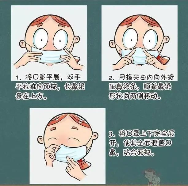 內(nèi)外上下要分清,貼合蓋住口鼻頜,調(diào)整壓緊金屬條,及時定期換口罩。