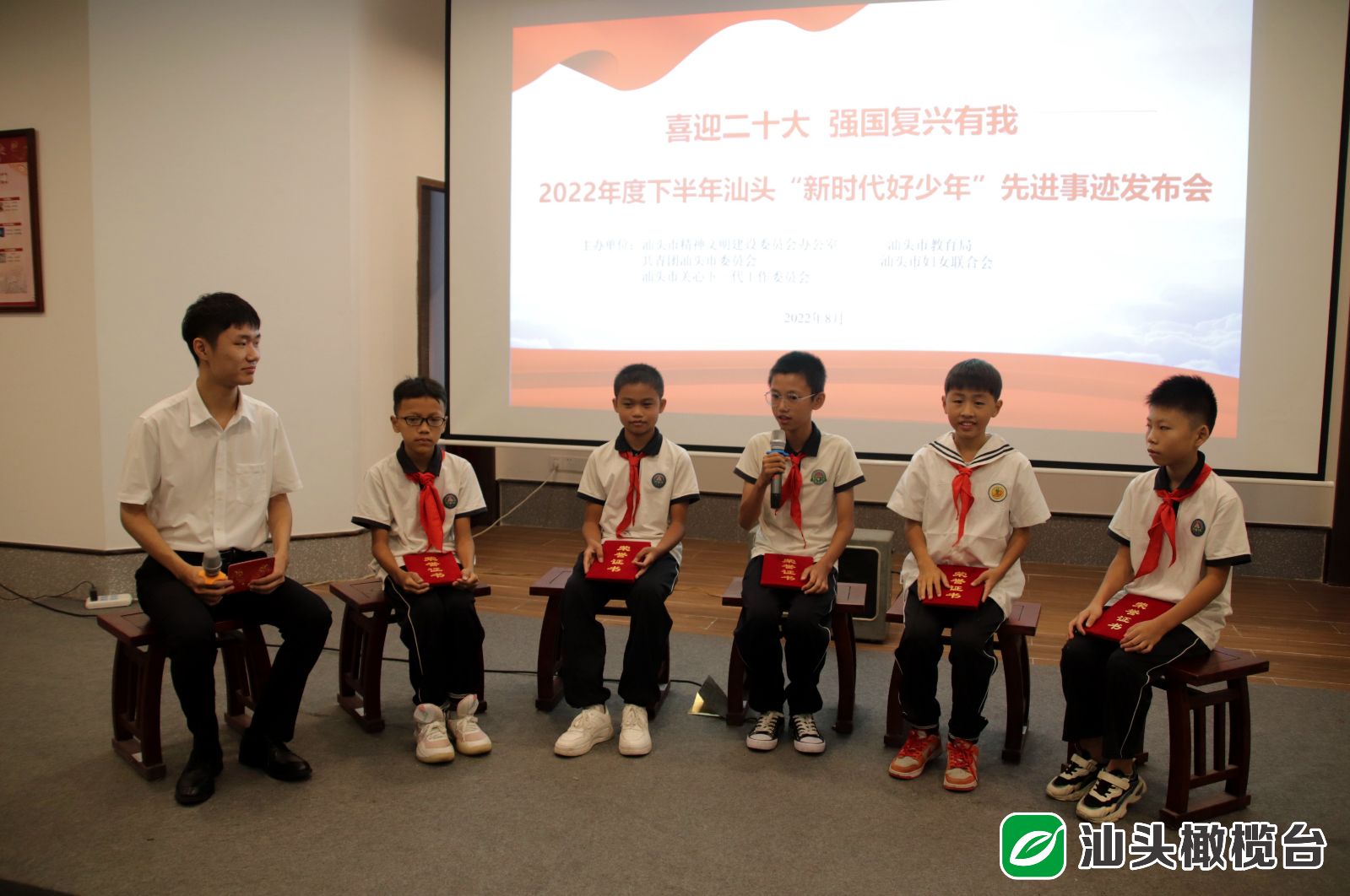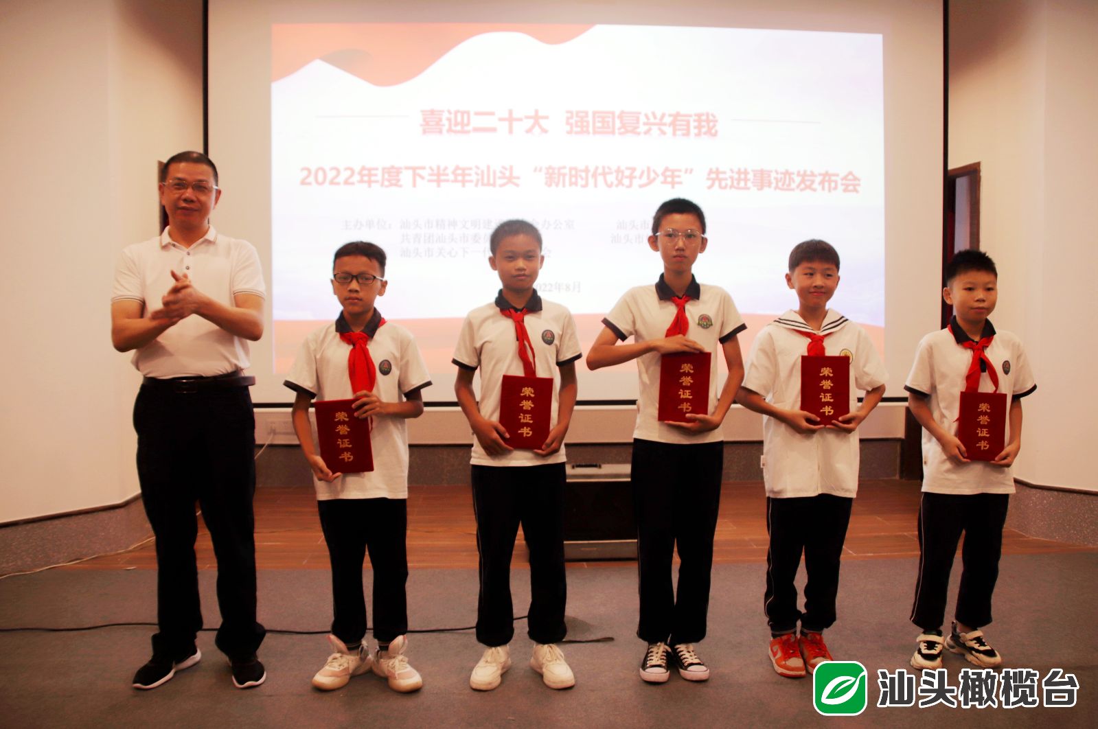 活動(dòng)中,市委宣傳部為2022年度下半年汕頭“新時(shí)代好少年”代表頒獎(jiǎng),并邀請(qǐng)他們現(xiàn)場分享好少年事跡,弘揚(yáng)新時(shí)代少年正能量。
